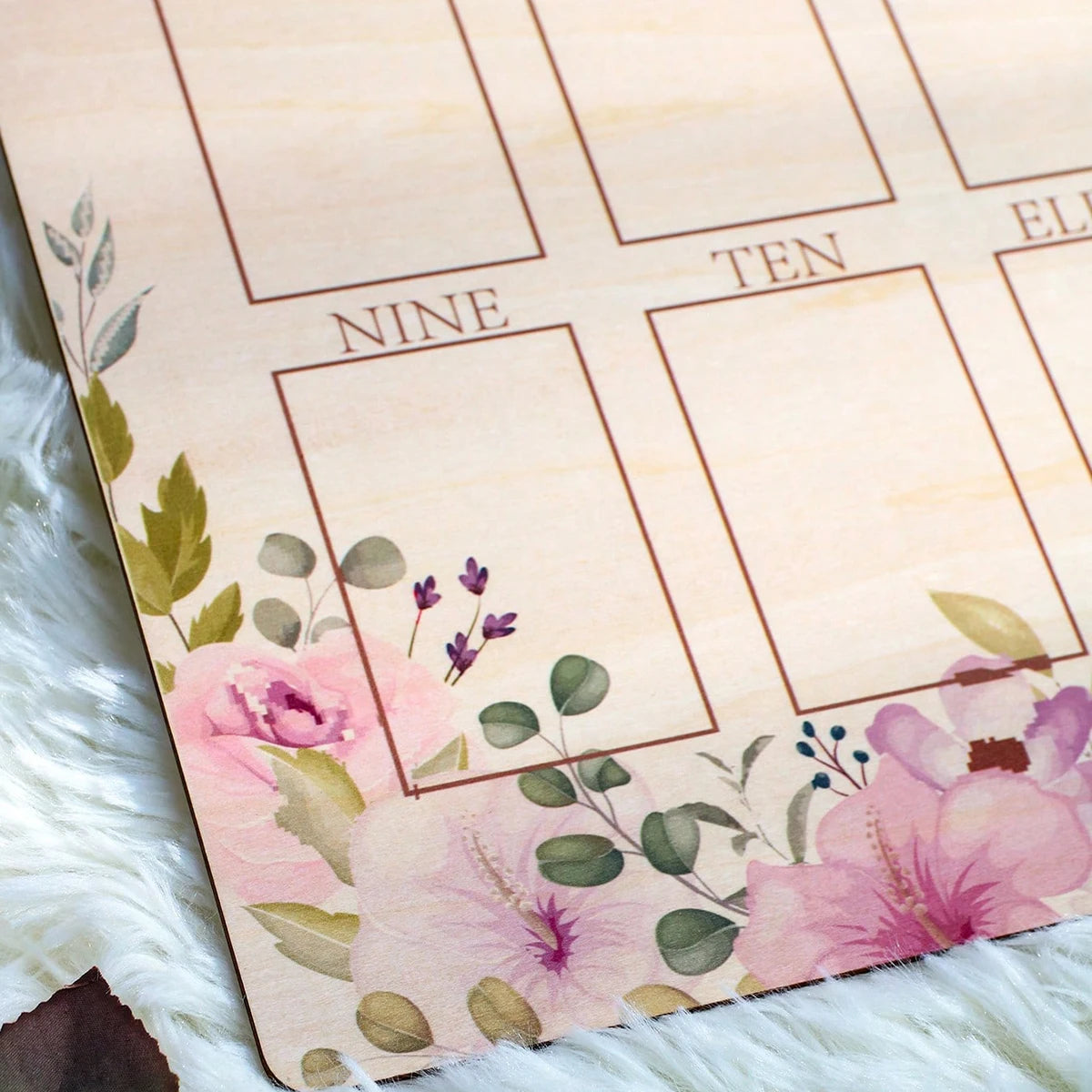 Celebrate every precious moment of your baby’s first year with our charming 12-month milestone photo frame. Designed to hold one photo for each month, this frame is the perfect way to document your little one’s growth and create a beautiful keepsake to treasure forever.